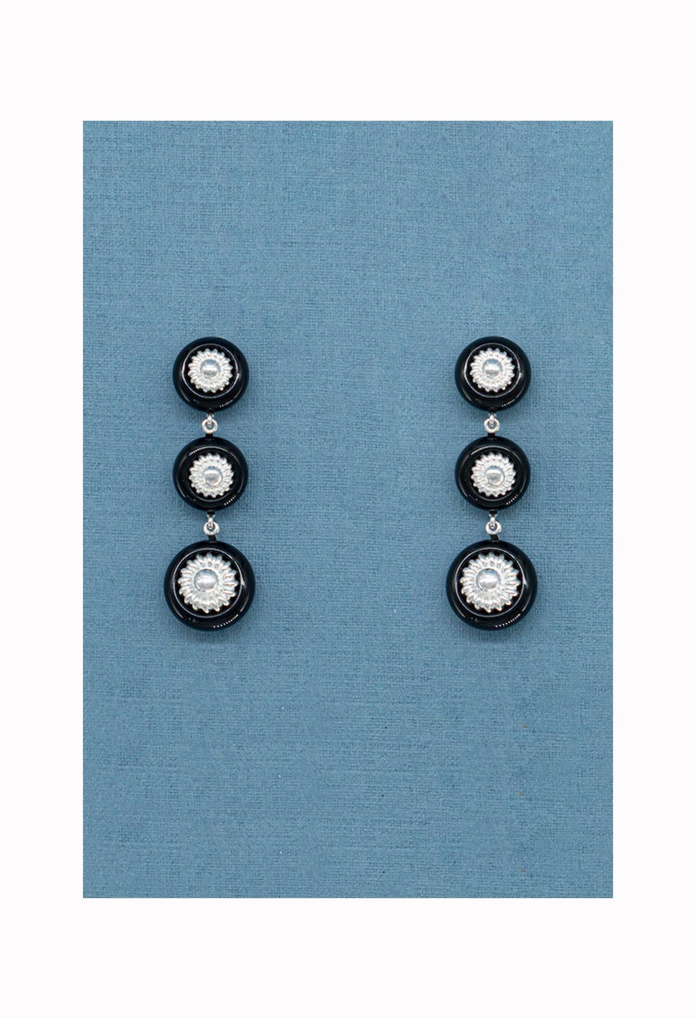 The earrings are arranged in natural black agate, adding a dynamic and flowing movement to the face, a good choice for an elegant and classic pick.