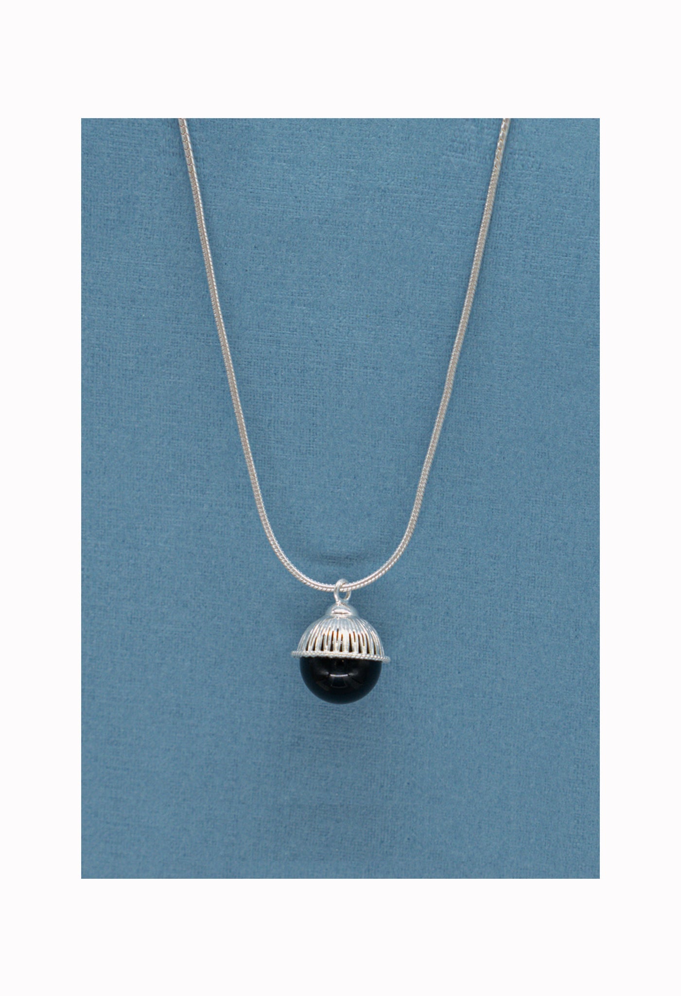 The handcrafted silver filigree caps with black agate, create a blend of artisanal elegance and natural purity.